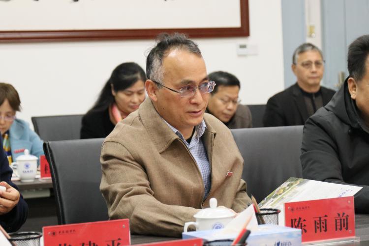 座谈会结束时,陈雨前做总结讲话。他表示,感谢上海市社联对景德镇学院的信任。陶瓷是中国传统文化的代表性符号,陶瓷文化是中国传统文化版图上的显赫坐标。历史上,景德镇瓷器通过海上丝绸之路走向世界,为推动东西方文化互鉴、促进人类文明发展做出了独特贡献;在“一带一路”建设的时代洪流中,景德镇也理应发挥桥头堡作用。为此,景德镇学院将充分发挥陶瓷专业人才培养、艺术创作、学术研究和文化传播领域的人才优势和学术资源优势,尤其是联合国教科文组织“陶瓷文化保护与创新”教席和教育部中华优秀传统文化(陶瓷文化)传承创新基地的平台优势和巨大影响力,积极对接国家“一带一路”愿景规划和景德镇国家陶瓷文化传承创新试验区“两地一中心”建设的目标任务,携手上海市社联国际丝路学院,整合多方资源,在国家商务部的统筹及景德镇市委市政府的大力支持下,以人才培养、人文交流、学术研究和国际合作为抓手,精准发力,善作善成,将“景德镇丝路学院”打造成为国内有影响、国际有声誉的国际智库和陶瓷文化传承创新高地,为培养服务“一带一路”建设的国际化人才发挥应有作用,为助推景德镇国家陶瓷文化传承创新试验区建设、打造对外文化交流新平台做出应有贡献,为打造人类命运共同体提供“中国方案”和“中国经验”。