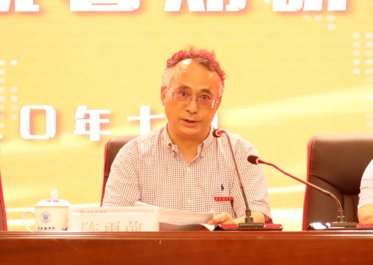 校长陈雨前作了题为“全面决胜‘十三五’科学谋划‘十四五’,以前瞻性视野和更高的要求引领学校新时代高质量高水平跨越式特色发展”的报告。陈雨前指出,学校“十三五”时期是爬坡过坎、充满挑战、迎接大考的时期,也是充满希望与机遇、成果丰硕、奋进胜利的时期。他从十七个方面总结了学校“十三五”规划执行情况与评价。并对“十四五”规划起草提出意见。一是要从高站位、宽视野、实谋划,做好学校“十四五”战略布局和顶层设计;二是要把握学校发展的历史方位,通过规划进一步明晰影响发展的九个方面关键问题。要明晰学校“十四五”规划的指导思想;要明晰学校“十四五”发展目标;要围绕加强党对学校事业的全面领导,落实立德树人根本任务,培养德智体美劳全面发展的高质量人才来谋划“十四五”规划;要围绕高质量高水平发展这一主题来谋划“十四五”规划;要围绕特色发展来谋划“十四五”规划;要围绕提升服务地方能力与水平来谋划“十四五”规划;要坚持“差异化、特色化、国际化”三大发展战略,围绕高校五大职能规划“十四五”规划;要围绕“十四五”时期学校发展的重点任务来谋划“十四五”规划;要提升服务水平,提高服务能力,围绕学校治理体系治理能力来完善好学校治理体系提升治理能力。
