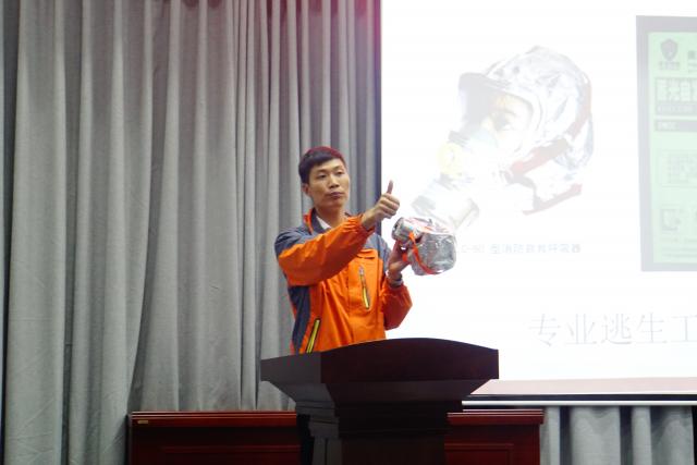 胡永永通过一个个真实的案例,讲解了近年来全国高校发生的火灾,触目惊心的画面和数据使参会人员受到了极大的震动。随后,他通过对学校火灾原因和数据的分析,详细介绍了消防工作思路,深入浅出地讲解了灭火设备的使用、初期火灾处置、火灾中如何自救逃生等消防常识。
