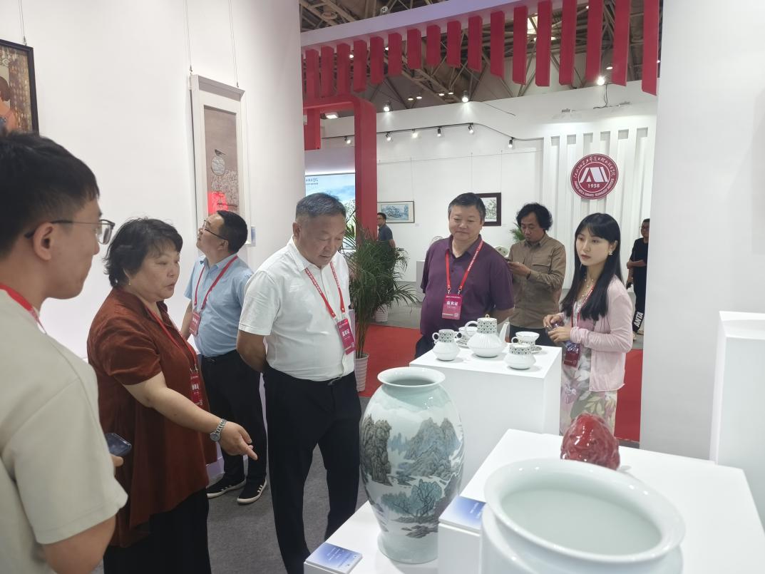 展会期间,多位领导嘉宾亲临现场观展。他们在景德镇学院教师团队的陶瓷艺术作品前驻足欣赏,给予了高度评价,并对学校未来的发展寄予厚望。同时,大量观众也被这些精美的陶瓷作品所吸引,他们在展品前纷纷驻足欣赏,用相机拍照留念,充分彰显了我校教师陶瓷艺术作品的强大的吸引力与感染力。