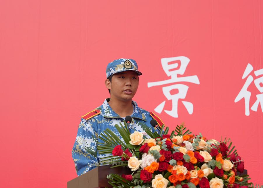 党委副书记、校长熊震宇在典礼上对圆满完成军训任务的同学们表示祝贺,向军训教官和辛勤工作的老师们致以崇高敬意,代表学校祝贺2024级新生开启人生新的篇章,从现在起,“景院人”这个光荣称号将伴随大家一生,同学们也从此肩负起服务国家、社会的责任。他强调,今日中国对优秀人才的渴望、对创新发展的需求比以往任何时候都更加迫切,面对2035年建成教育强国、科技强国、人才强国,本世纪中叶实现中华民族伟大复兴的中国梦奋斗目标,我们每个人都要有时不我待、只争朝夕的紧迫感。在2024级新生们启航人生新征程之际,熊震宇寄语同学们三点期望:一是要向外求索,厚植家国情怀,将个人人生与民族命运紧密相连;二是要向内兼修,涵养君子品德,坚持自立自律,树立正确道德价值观;三是要向上成长,知行合一,追求精致致用,承担自主学习和自我管理责任,在实践中检验所学、成就事业,在景德镇学院里生活幸福、快乐成长,在投身强国建设和民族复兴的生动实践中放飞青春梦想,书写精彩人生。