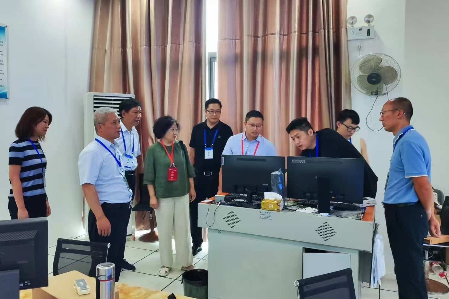 江西省教育考试院督查组及景德镇市教育考试中心等人员在监控室查看考点考试情况 教务处供图