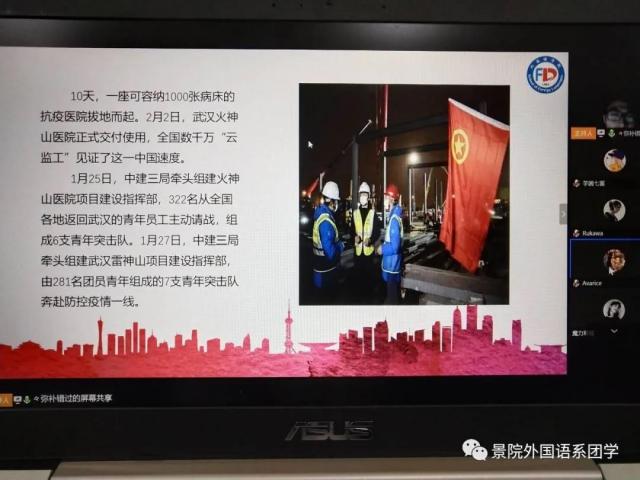 3月16日晚7点,我校外国语学院团委副书记(学生兼职)冯希宁利用腾讯会议app给外院学子上了一堂团课。课上,冯希宁隆重介绍了三位防疫志愿者,他们分别是18英教1班王能浩、19英教余冰冰、19英语1班谢思婷,并邀请他们与外院学子交流心得。