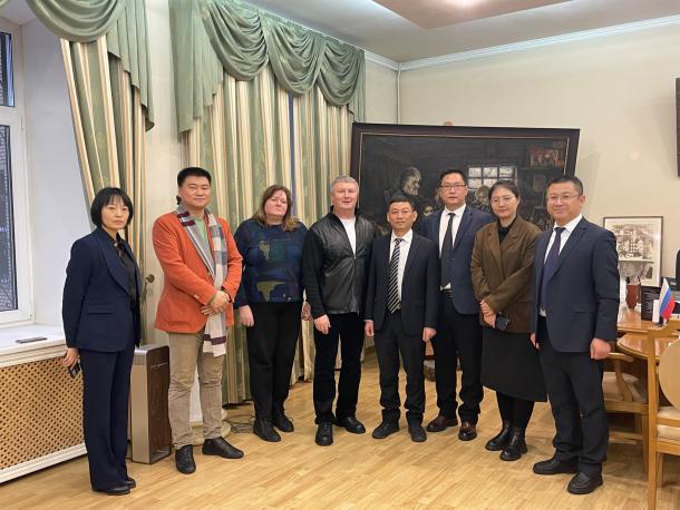 在俄罗斯国立工艺美术大学,代表团会见了该校校长库拉索福、副校长斯列普欣、丝路创新学院院长郭晓宾、信息处处长安娜,校长秘书吉亚娜、博物馆馆长娜达利亚。双方就多种模式开展国际暑期项目、联合举办国际论坛、互派学者访学等展开讨论,并达成一致意见,双方签署了合作意向书。代表团还应邀参观了该校展览馆。