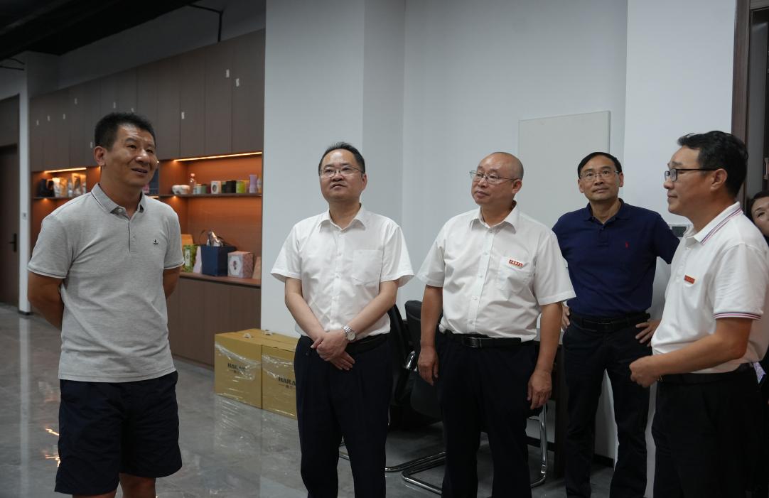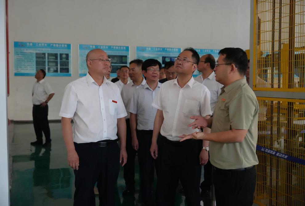 吴磊(中)在牧森公司“工业积木”产业学院调研