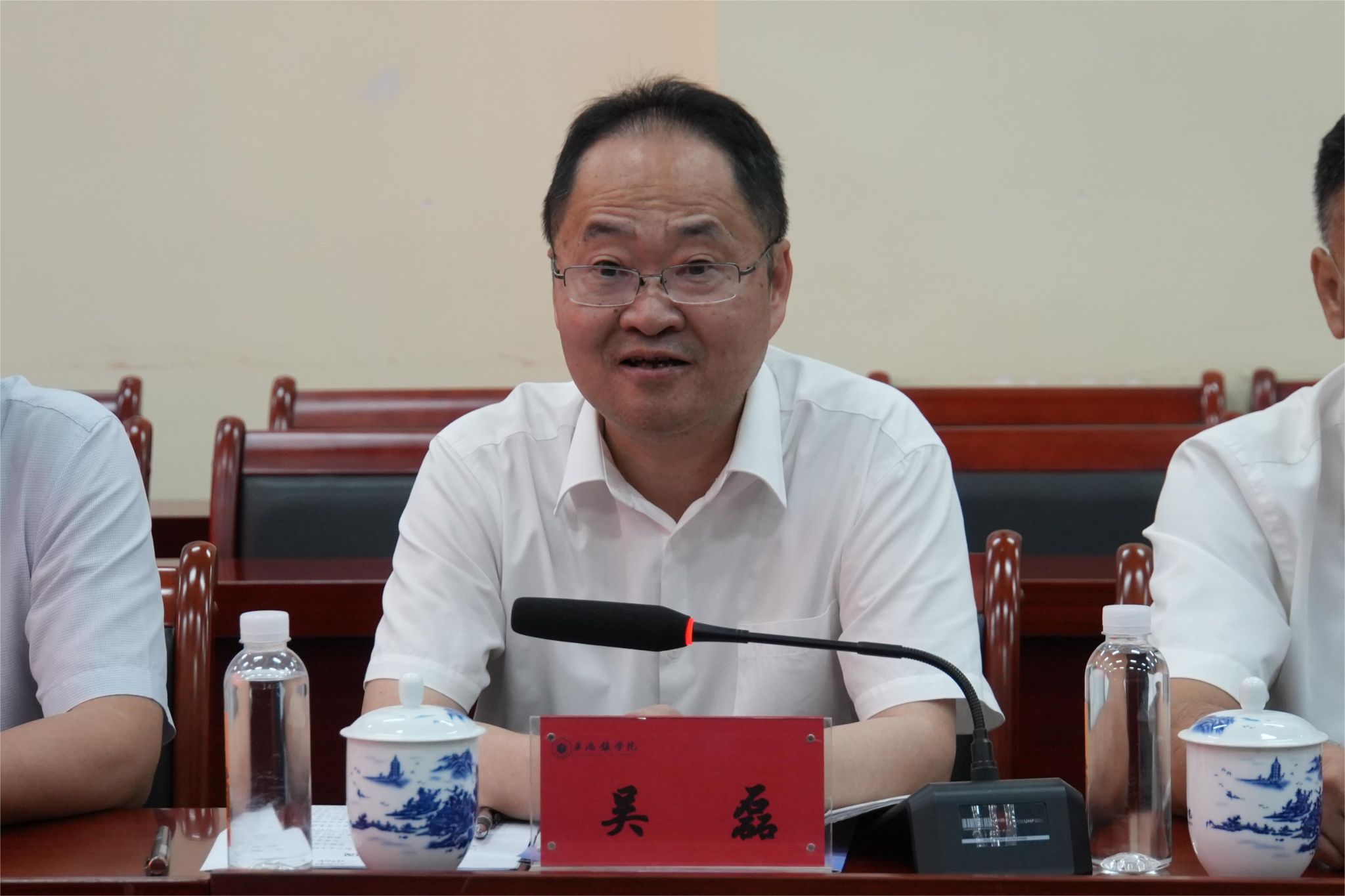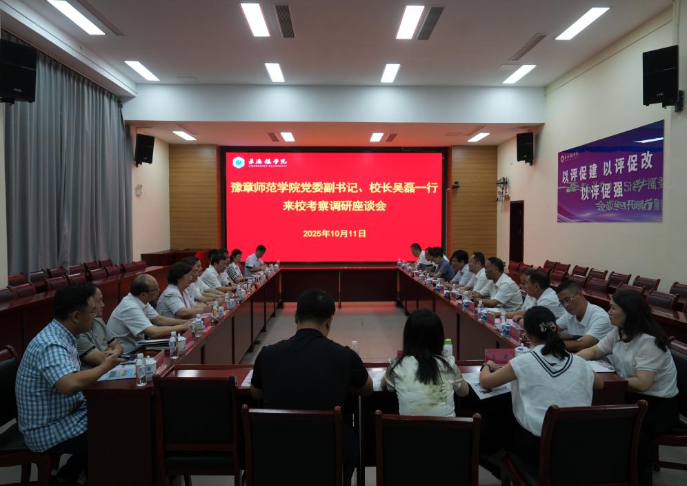 熊震宇代表我校对吴磊一行的到来表示热烈欢迎,简要介绍了学校的办学历史、办学特色和学科转型发展等方面的经验,表示两校在发展路径上具有显著互补性,期望能向豫章师范学院学习宝贵经验。吴磊在高度评价了我校近年来取得的办学成果,希望通过深化校际交流实现区位优势互补,共同推动应用型高校高质量发展,助力两校协同成长。