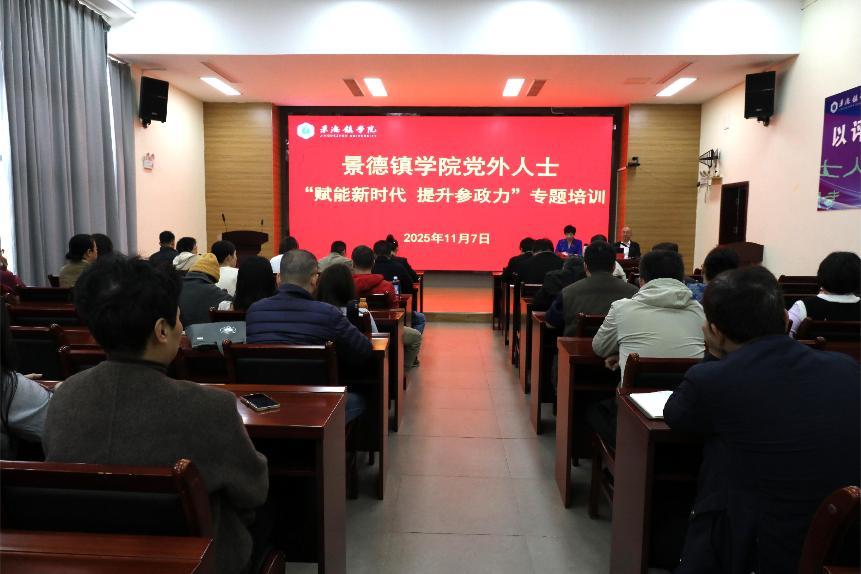 (本网讯:文|石峰/图|罗周稣颀、王文静)为深入学习贯彻习近平总书记关于做好新时代党的统一战线工作的重要思想,进一步提升我校党外人士参政议政能力和水平,11月7日,我校在第二报告厅召开全校党外人士“赋能新时代 提升参政力”专题培训会,会议邀请景德镇市政协机关党组成员、一级调研员王玉平担任主讲嘉宾,党委统战部副部长程桑主持会议。