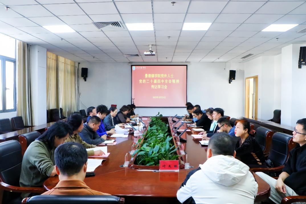 (本网讯:文│廖翊君/图│廖翊君、樊静悦)10月29日,我校在318会议室召开党外人士党的二十届四中全会精神传达学习会,深入学习贯彻党的二十届四中全会精神。校党委副书记王丽心出席会议并讲话,党委委员、统战部部长万文军传达会议精神,统战部副部长程桑主持会议。