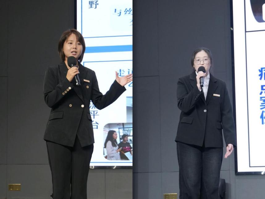 陈雅纯(左)、胡娴杰(右)分别路演国赛获奖项目