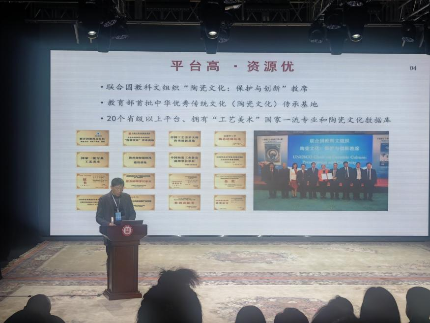 11月30日,黄志坚代表景德镇学院中华优秀传统文化传承基地作了精彩汇报。他围绕基地的深厚基础、目标任务、实施思路、特色亮点、预期成效及示范引领作用等方面,详细介绍了我校在依托千年瓷都文化资源,将陶瓷艺术传承融入教育教学、科学研究、社会服务和文化传承创新全过程的探索与实践,充分展示了我校在推动陶瓷文化创造性转化、创新性发展方面取得的显著成果。