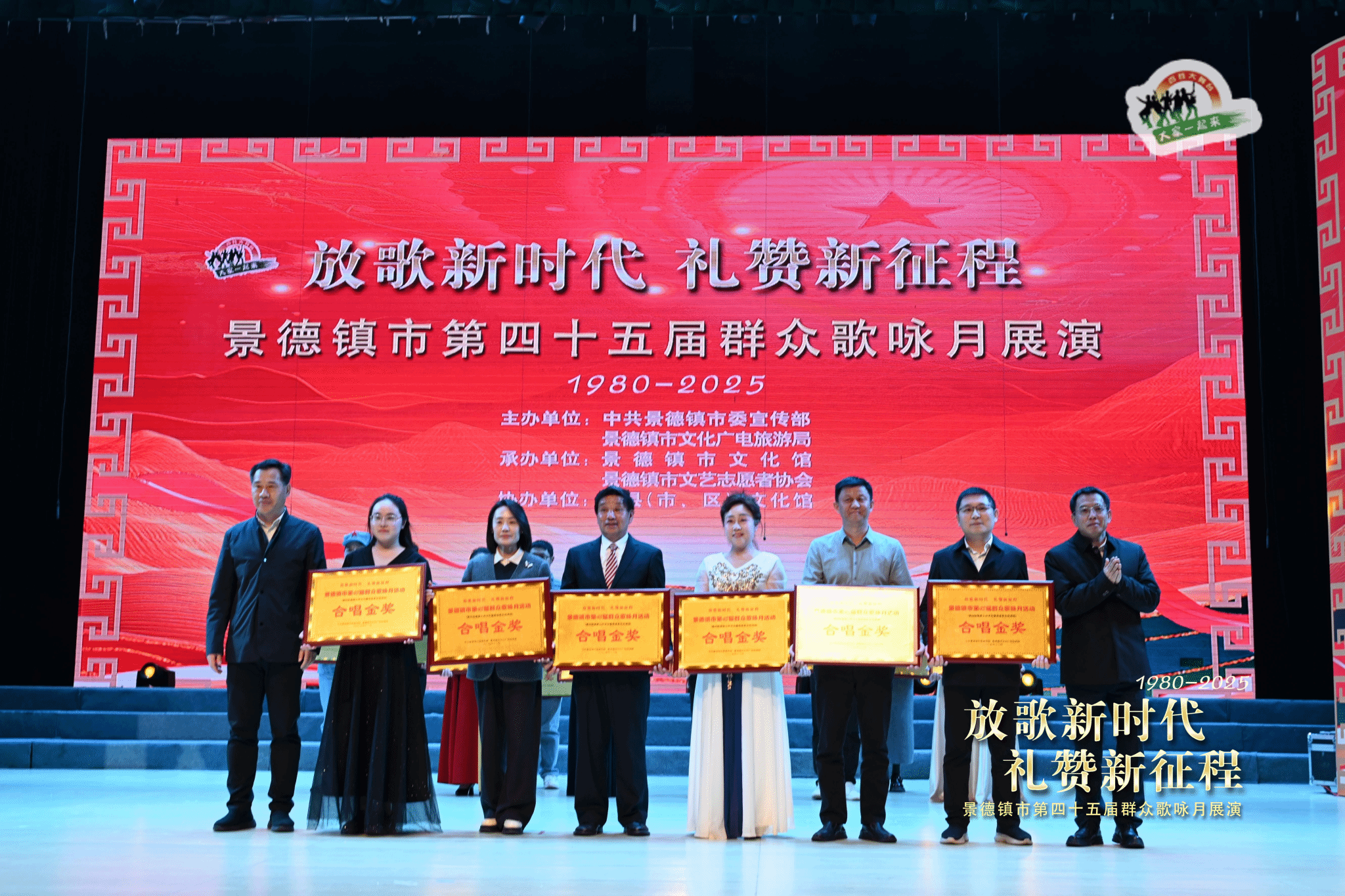 (本网讯:音乐舞蹈学院)12月3日晚,由中共景德镇市委宣传部、景德镇市文化广电旅游局主办的“放歌新时代 礼赞新征程”景德镇市第四十五届群众歌咏月活动在市群众文化活动中心圆满落幕。我校音乐舞蹈学院合唱团凭借一曲饱含深情与力量的《追寻》惊艳亮相,以精湛的演唱技艺和真挚的情感表达脱颖而出,成功摘得金奖,用青春旋律诠释了景院人的艺术追求与家国情怀。