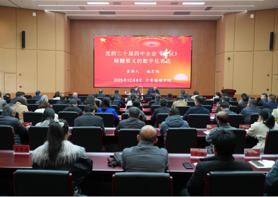 (本网讯:文|李婷婷/图|郭诗蕊、徐幼玲、黄嘉慧)为深入学习领会党的二十届四中全会精神,准确把握《中共中央关于制定国民经济和社会发展第十五个五年规划的建议》(以下简称《建议》)的精髓要义,切实把全校师生的思想和行动统一到党中央决策部署上来。12月8日上午,我校在第一报告厅召开学习贯彻党的二十届四中全会精神专题辅导报告会,特邀中共中央政策研究室原副主任、资深理论专家施芝鸿作题为《党的二十届四中全会〈建议〉精髓要义的数字化表达》专题辅导报告。校党委书记陈小林主持报告会,校党委副书记王丽心作总结讲话。校领导班子成员、全体中层干部、思政课教师代表参加学习。
