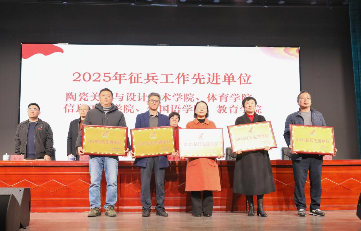 征兵工作先进单位代表、陶瓷美术与设计艺术学院党委书记陈后辉作发言,交流经验。保卫处副处长曹曦东总结了2025年征兵工作,并对2026届毕业生征兵宣传进行布置。
