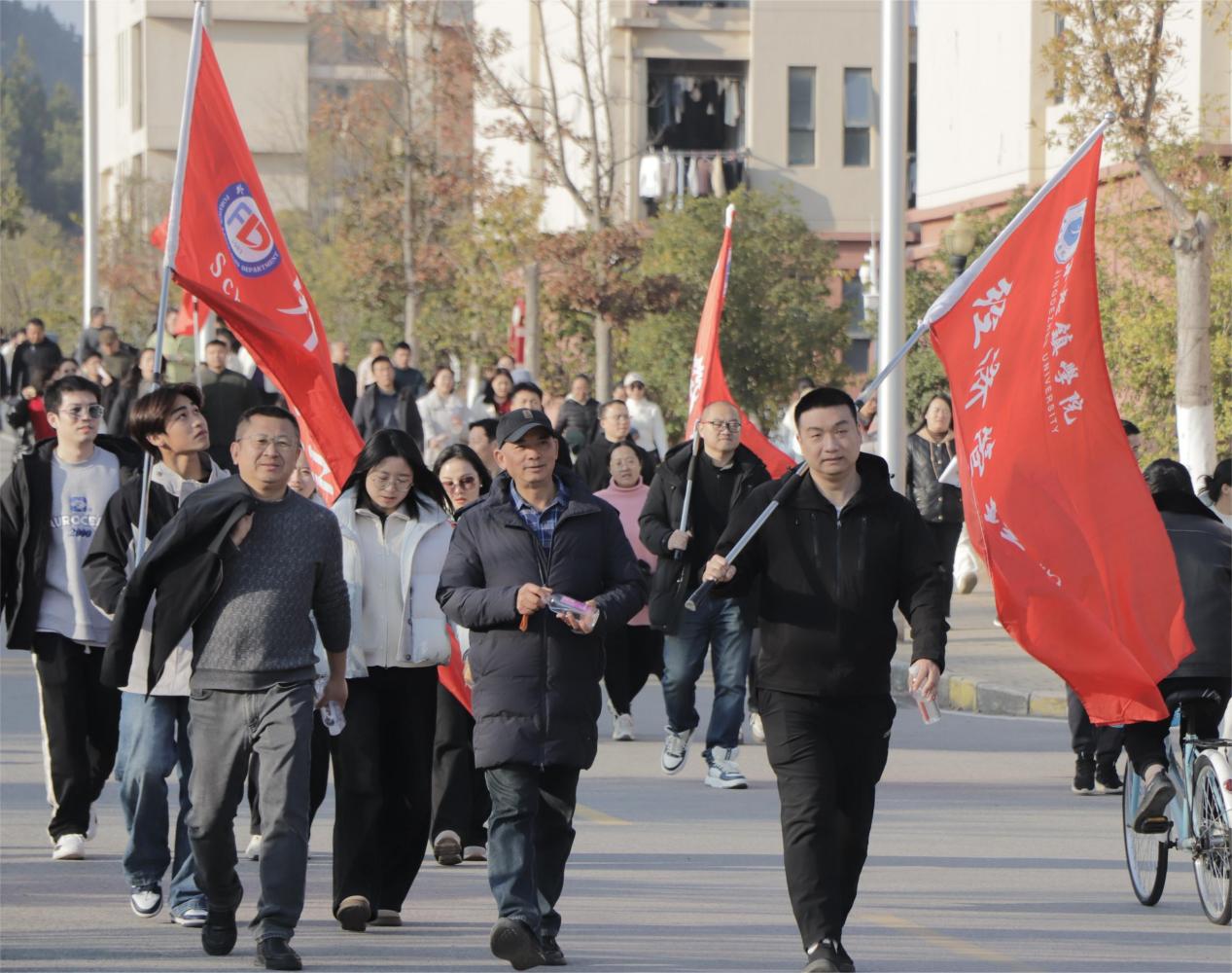 (本网讯:文|郭诗蕊/图|付珍、刘文静、王文静、许金洋、郭诗蕊)为深入贯彻全民健身国家战略,丰富教职工精神文化生活,营造积极向上、团结奋进的校园文化氛围,1月9日下午,我校第二届“奋进景院·健步同行”教职工校园健步走活动在校园内活力开展。全校各二级学院、各单位和各部门积极响应,踊跃参与。教职工们以矫健步伐践行健康理念,用昂扬姿态展现景院人奋发有为、笃行不怠的精神风貌。