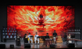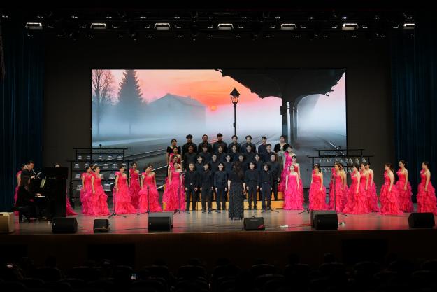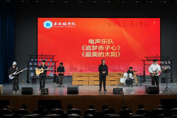 大会现场艺术氛围浓厚,校友和师生同台献艺,精彩节目轮番上演。姚旭、吴健发等带来的萨克斯四重奏《宝岛》旋律优美,校友王洪演唱的女声独唱《春天的芭蕾》高亢嘹亮,学院民乐团演绎的《哪吒》《三六》节奏明快、韵味十足;于芳带来的景德镇大鼓《春天的约定》鼓点铿锵,尽显非遗文化的独特魅力,校友尤军演唱的《沧海一声笑》豪迈洒脱,勾起全场对青春岁月的美好追忆。音乐舞蹈学院“动力鲨鱼”电声乐队演绎的《追梦赤子心》充满青春活力,“云聆”合唱团带来的《再回首》温情脉脉,最后全体校友共同合唱《不忘初心+明天会更美好》,熟悉的旋律萦绕耳畔,真挚的情感感染全场,将现场气氛推向高潮,歌声中满含着对青春岁月的追忆与对未来的美好期许。