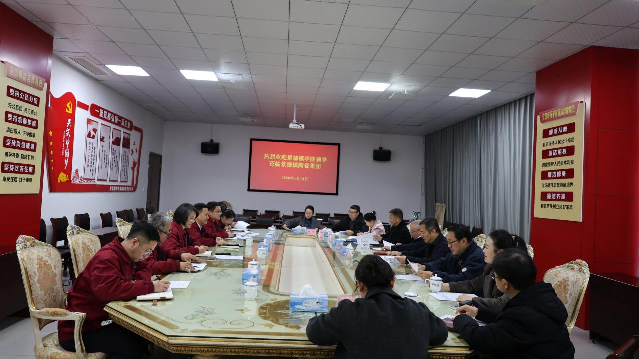(本网讯:赵云君)为持续推进校企合作育人模式走深走实,推动学校产教融合向纵深发展,1月14日下午,由我校党委书记陈小林带队,党委委员、副校长方漫,产教融合中心顾问李新荣及产教融合中心、人事处、科研处、党政办、艺术学院等部门负责同志组成的考察团前往景德镇陶瓷集团开展考察,景陶集团党委书记、董事长邓景扬陪同。