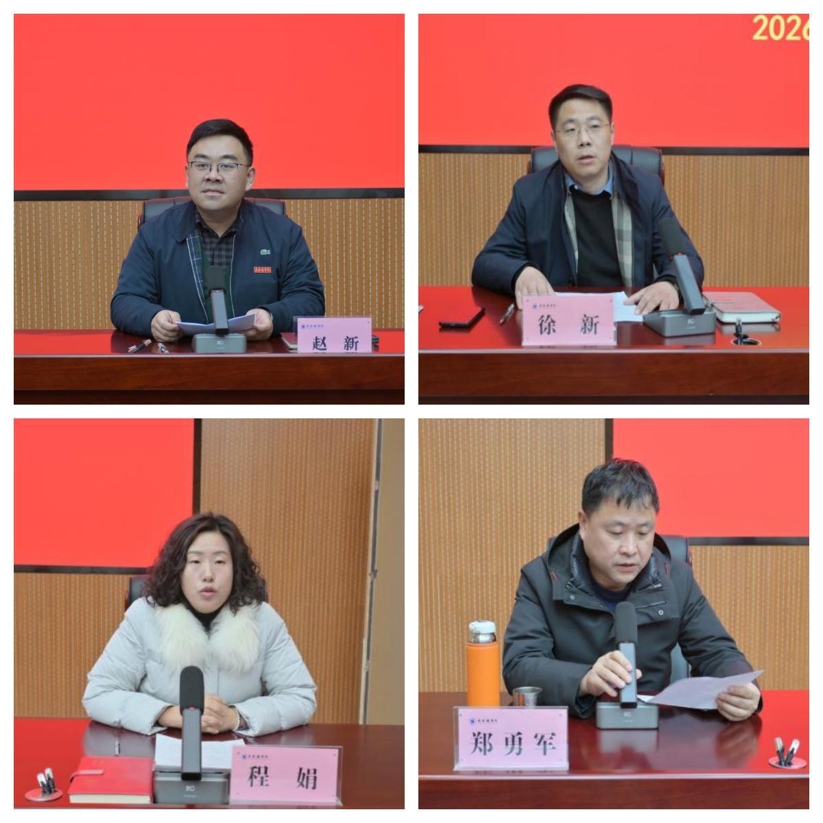 会上,赵新、徐新、程娟、郑勇军就分管领域工作进行汇报与布置。