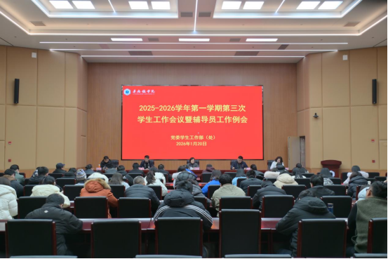 (本网讯:文|胡文婷/图|刘文静)1月20日上午,我校2025-2026学年第一学期第三次学生工作会议暨辅导员工作例会在第一报告厅召开。校党委委员、副校长周清平出席会议并讲话,学工处副处长(主持工作)赵新主持会议,学工处副处长徐新、副处长程娟,大学生心理教育中心主任郑勇军出席。