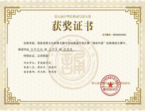 (本网讯:付珍)近日,第七届中华经典诵写讲大赛各类奖项相继揭晓,我校学生凭借扎实的文化素养、精湛的表现技艺,在全省乃至全国赛事中脱颖而出,共荣获6项荣誉。