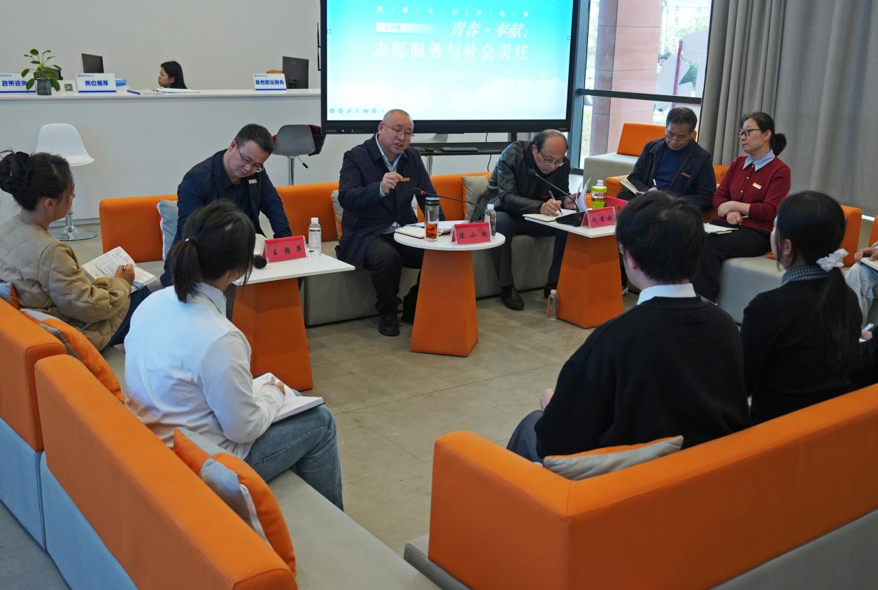 活动现场打破传统思政课堂模式,以轻松家常的对话氛围,让思政教育更具温度与活力。校党委委员、宣传部部长赵雪政,学工处处长王振华、艺术学院党委书记陈后辉、生环学院党委书记田双(博士教师代表),博士教师代表、团委素质拓展部部长、校青年志愿者协会指导教师张琳与6名校优秀志愿者齐聚一堂,围绕志愿服务经历、成长感悟、责任担当等话题畅所欲言,让志愿精神成为思政育人的生动教材。