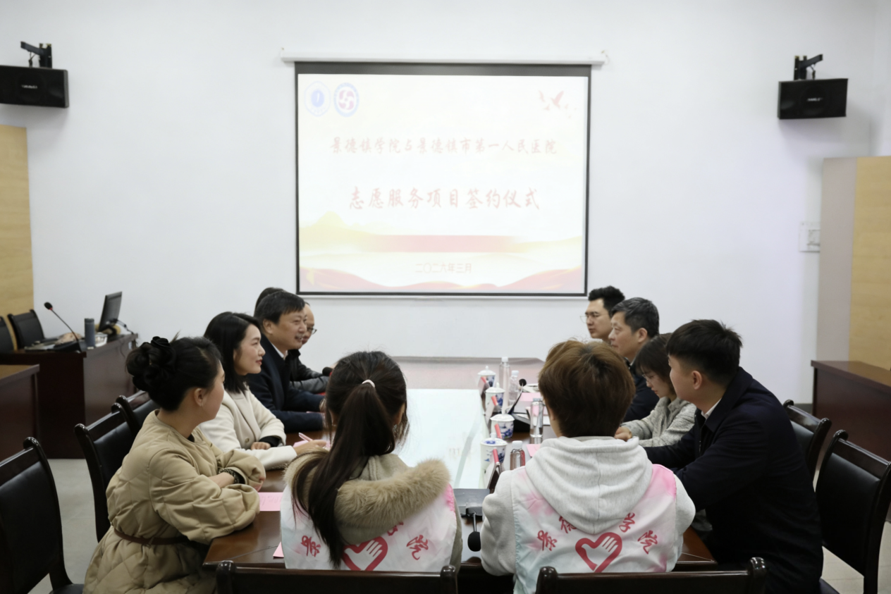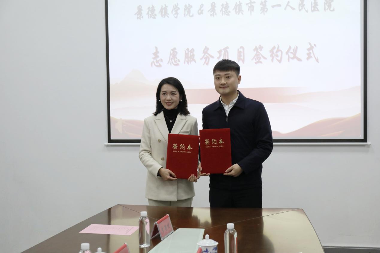 (本网讯:文|冯雨轩/图|徐绮梦、冯雨轩)3月27日上午,我校与景德镇市第一人民医院志愿服务项目签约仪式在大学生活动中心104会议室顺利举行。校党委副书记王丽心,党委委员、宣传部部长赵雪政和景德镇市第一人民医院党委书记张将,党委委员、工会主席胡妮出席仪式。