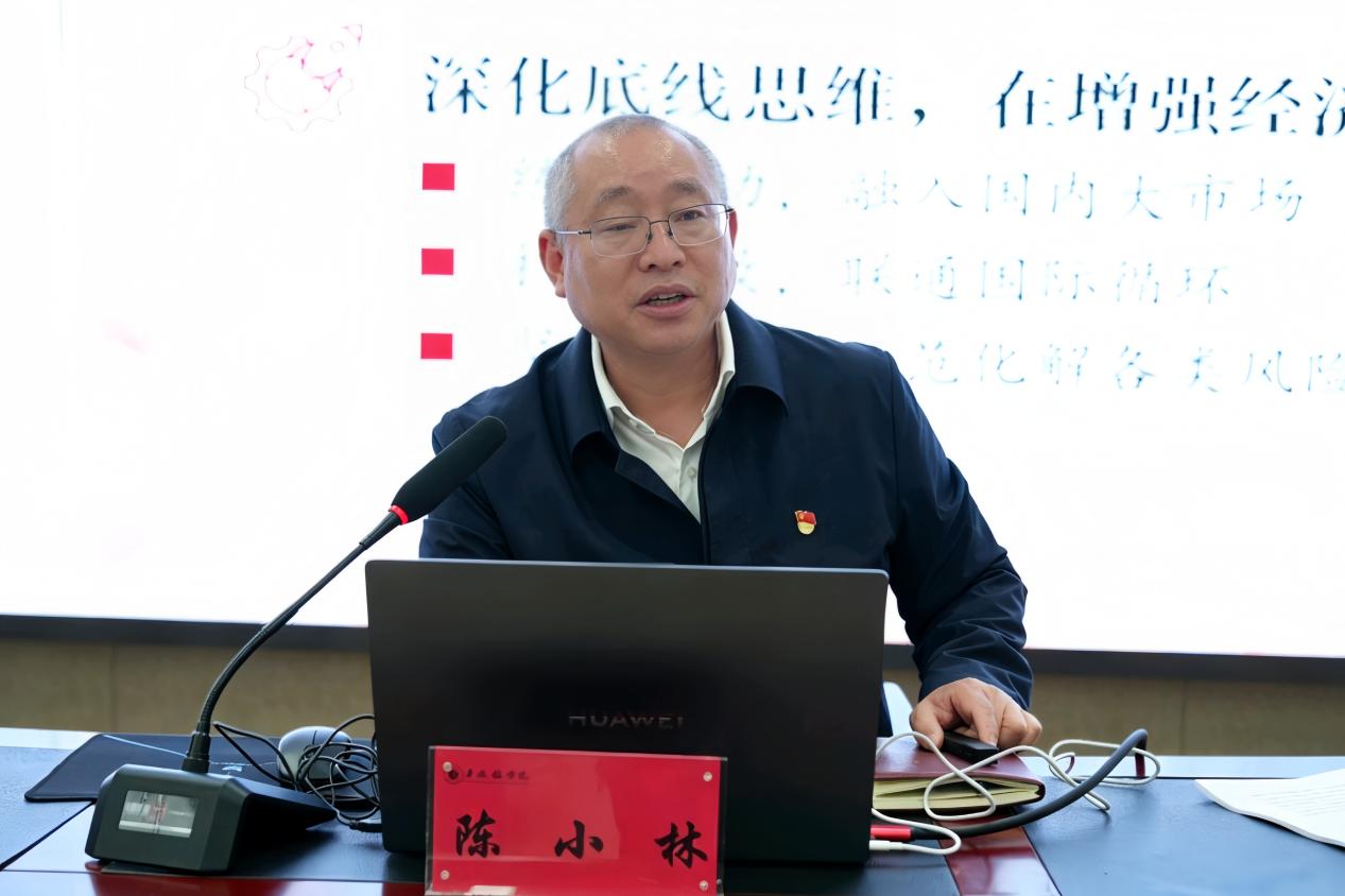 课上,陈小林跳出“照本宣科”,结合各班专业特色,重点解读了与学子息息相关的内容,引导同学们找准专业与国家发展的契合点,让大家明白,学好专业知识,就是为国家发展添砖加瓦。聚焦教育、科技、人才一体化发展,他指出数字化、人工智能是高等教育新赛道,勉励在场青年学子,要厚植家国情怀,坚定理想信念,将个人成长融入国家发展大局;练就过硬本领,主动学习前沿知识,积极参与实践锻炼,努力成为适应新时代需求的高素质应用型人才,以青春之力服务中国式现代化建设。