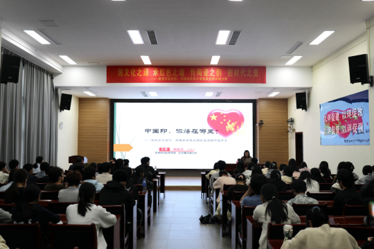 讲座铸魂传文脉,分享共鸣聚力量。4 月 21 日,《中国印,你烙在哪里?》专题讲座在第二报告厅开展。图书馆信息服务部主任钟媛玲副教授以深厚学养解读中华优秀传统文化内核,结合历史典故与时代使命,引导青年学子坚定文化自信、扛起传承重任。现场互动热烈,同学们踊跃发言,在思想碰撞中厚植文化根基。