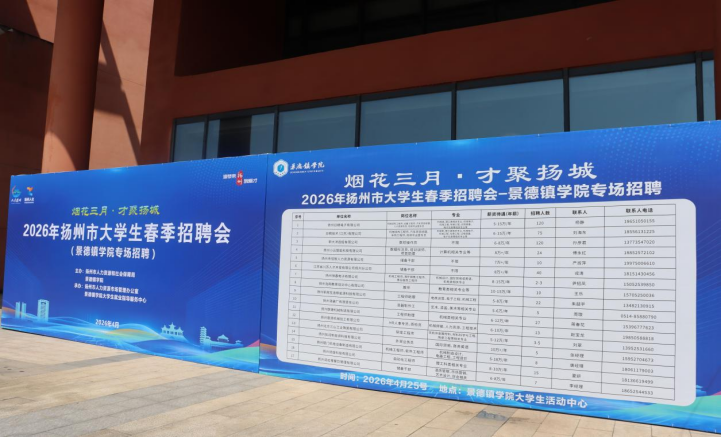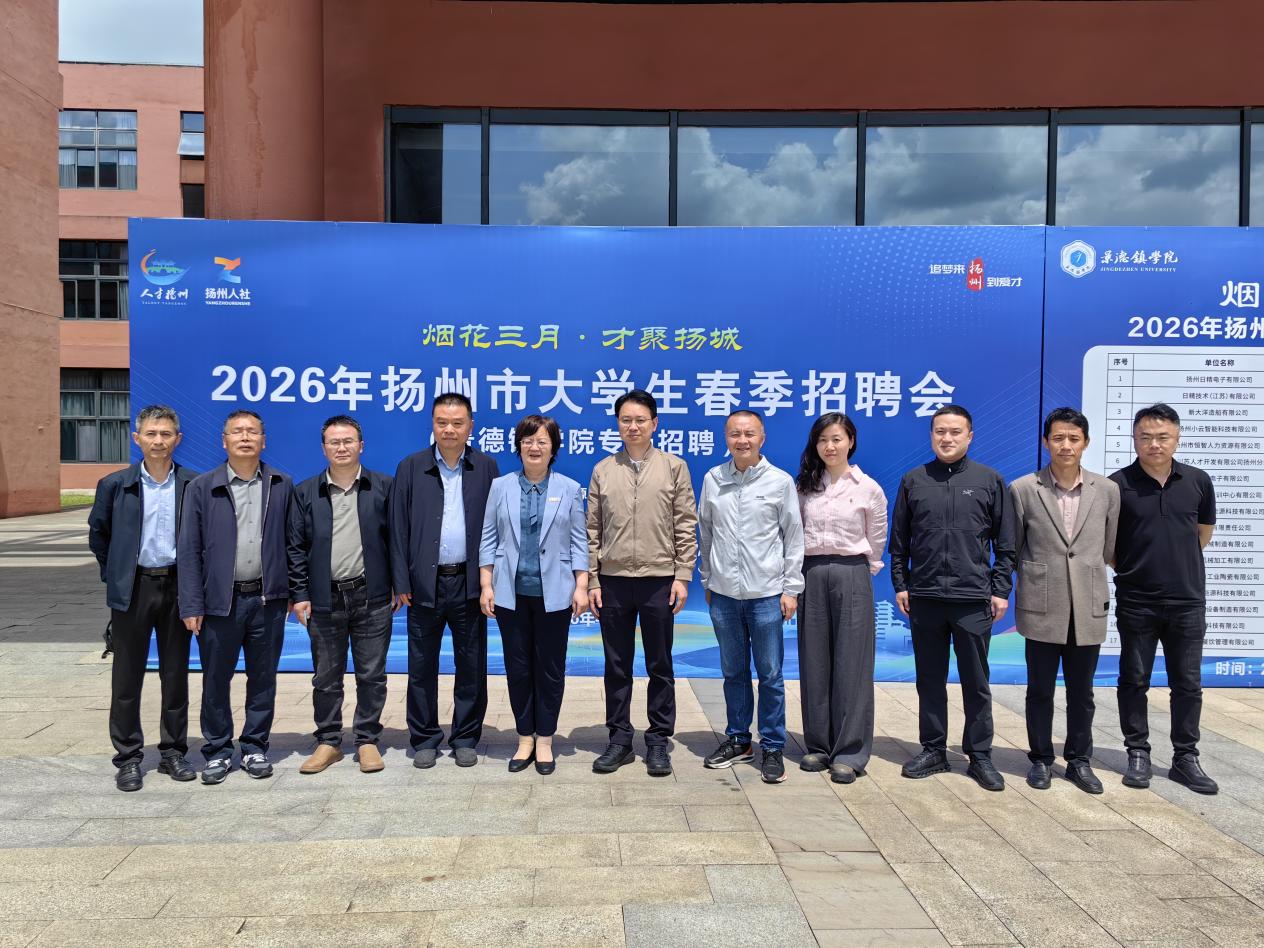 (本网讯:大学生就业指导服务中心)为扎实做好毕业生就业服务工作,搭建校地校企精准对接平台,助力毕业生实现高质量就业,4月25日,“烟花三月·才聚扬城”—2026年扬州市大学生春季招聘会(景德镇学院专场)在我校顺利举办。校党委委员、副校长周清平,扬州市人社局局长王志海,景德镇市人社局局长罗莉等人参加招聘活动。