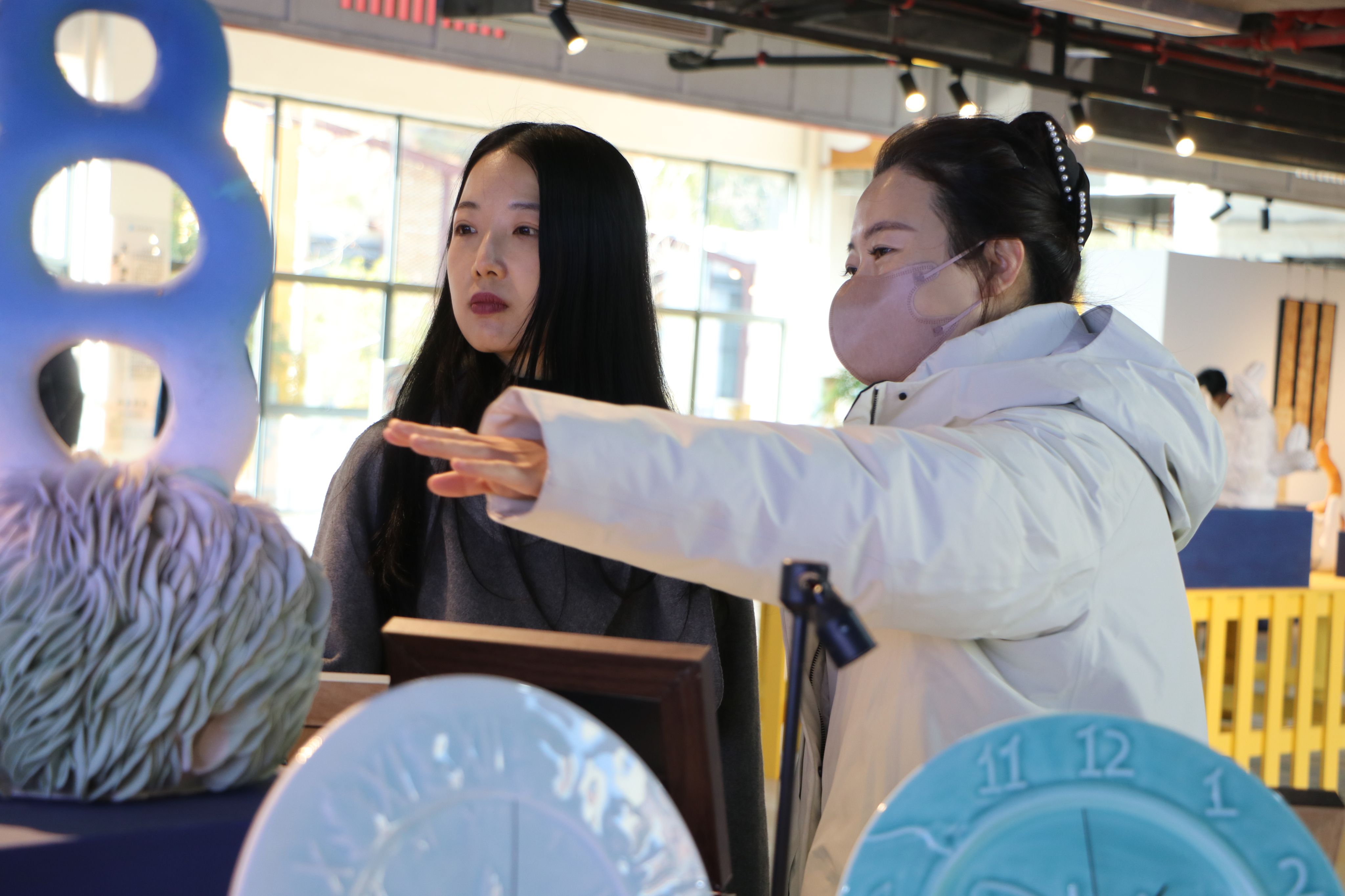 吴新星(左)参观艺术学院