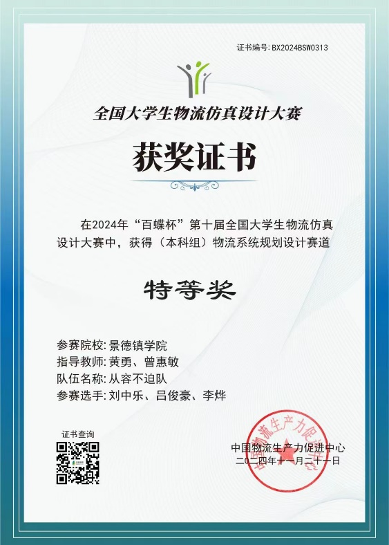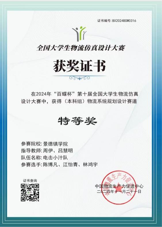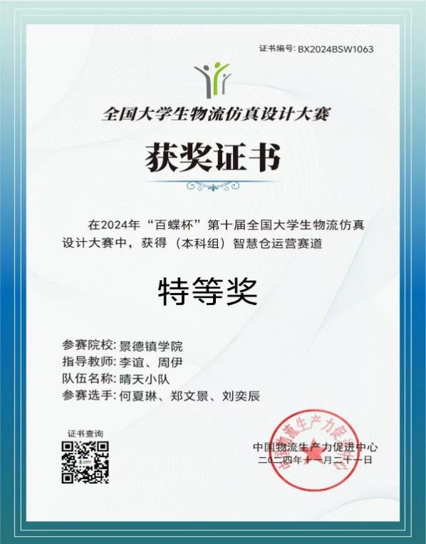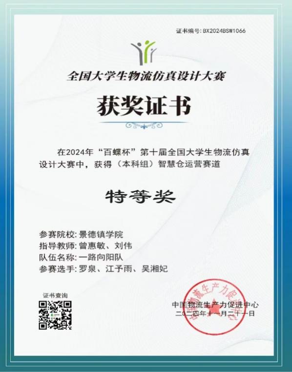 (本网讯:文|何夏琳/图|江怡青、陈博凡)近日,由中国物流生产力促进中心主办的2024年“百蝶杯”第十届全国物流仿真设计大赛圆满落幕。我校经济管理学院物流管理专业参赛队伍凭借扎实的专业基础、出色的团队协作能力和卓越的创新能力,在激烈的角逐中脱颖而出,斩获全国特等奖(最高奖项)4项。