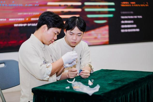 比赛中,“瓷光数影”队展现出过硬的综合素养:理论考试环节,队员们精准作答,彰显深厚的知识积淀;产品设计环节,他们将景区地域文化与大数据、AI技术深度融合,形成兼具可行性与创新性的方案,并配套合理预算报价;营销讲解环节,队员们通过逻辑缜密的PPT演示与生动的陶瓷修复表演,立体呈现瑶里景区的文旅价值,赢得评审团高度认可。