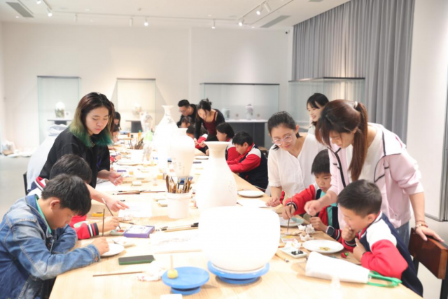 4月19日上午,在陶瓷美术与设计艺术学院艺术教育系陈琳娜老师的带领下,22级艺术教育专业的同学们前往景德镇非物质文化遗产馆,联动香港浸会大学师生与景德镇市罗家学校学生开启了一场名为“紫荆花·茶花 绽放景德镇”的非遗公益研学活动。该活动由景德镇非物质文化遗产保护协会主办,香港浸会大学、景德镇市罗家学校、景德镇学院艺术教育专业师生共同参与。