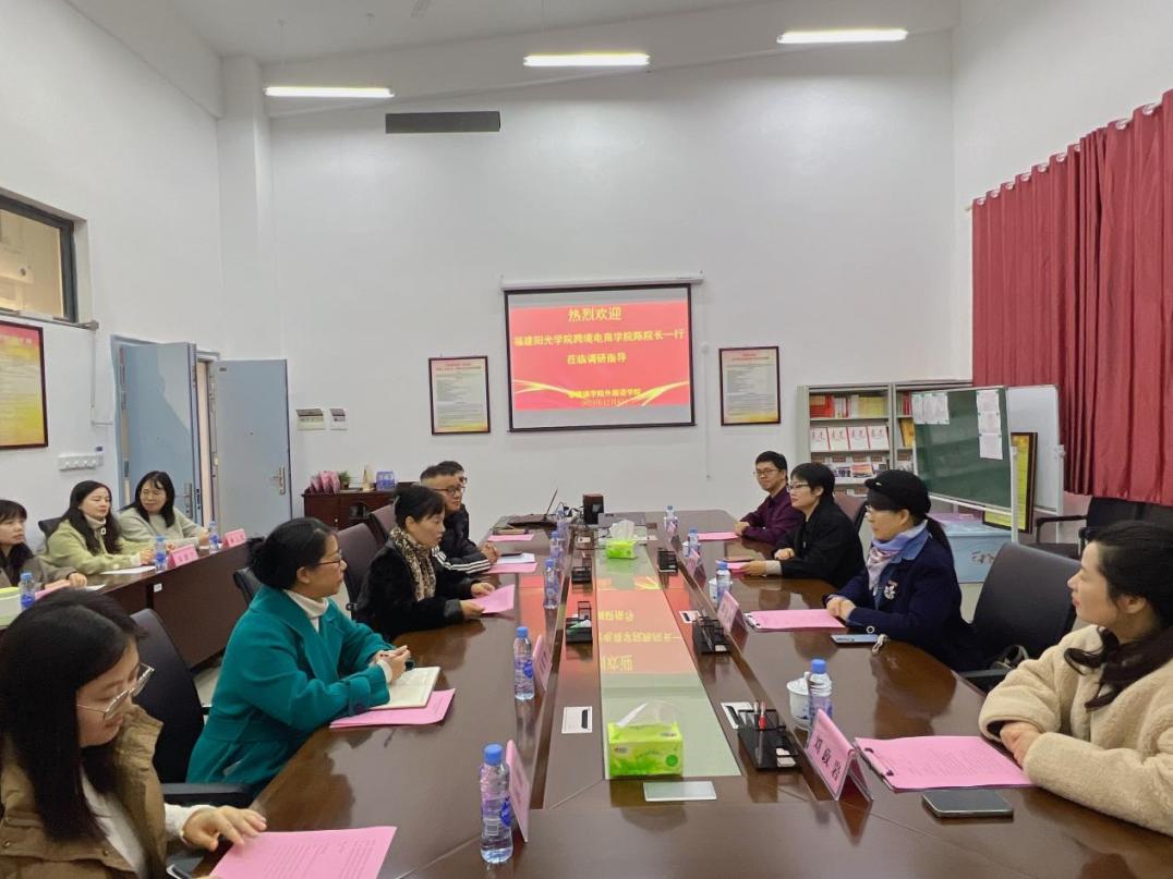 (本网讯:张守宽)近日,福建阳光学院跨境电商学院党务副院长陈宏川,党总支书记任宪敏,副院长何锡梗以及院长助理刘政岩一行四人来到我校外国语学院进行参访交流。外国语学院院长吴芹率班子成员热情接待,并进行深入交流。