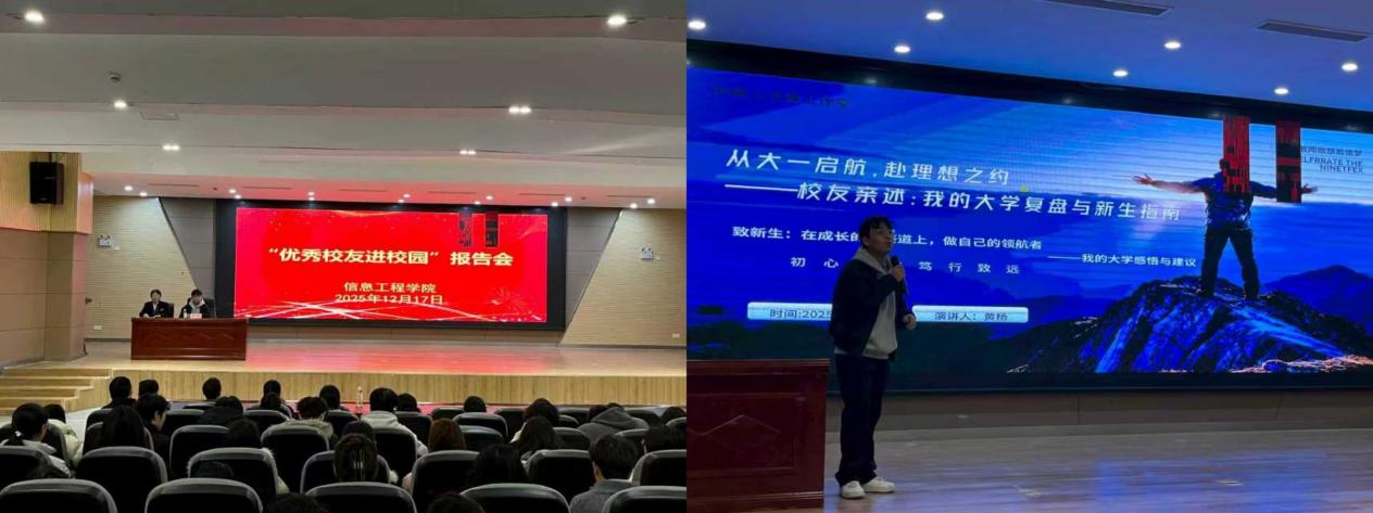 (本网讯:信工学院)近日,由信工学院主办的“优秀校友进校园”专题分享会,在图文报告厅温情落幕。信工学院2023届网络工程专业校友黄杨——现任中国移动景德镇城西分公司店长,为现场近260名学子带来了一场兼具青春温度与成长干货的分享。