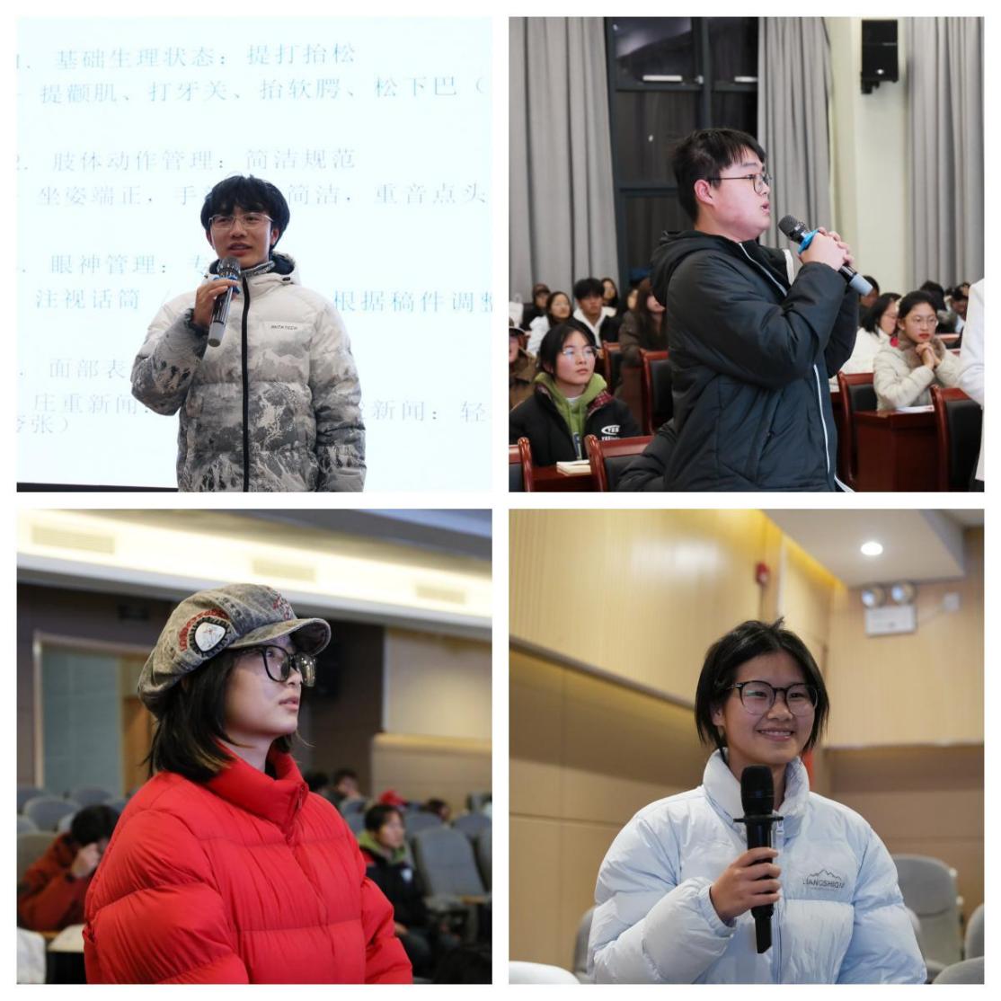 12月22日至26日晚,由校党委宣传部融媒体中心主任李婷婷、校团委副书记周桂诗洋、校团委组织宣传部部长黄超和校融媒体中心学生干部金俊名、付珍以及校团委学生干部兰晓倩组成的授课团队,围绕相机使用技巧、短视频剪辑技巧、新媒体账号运营策略、新闻摄影、写作技巧和新闻播音技巧等核心内容,结合自身的实践经验,紧扣校园传播需求,通过生动的案例剖析展开系统教学。