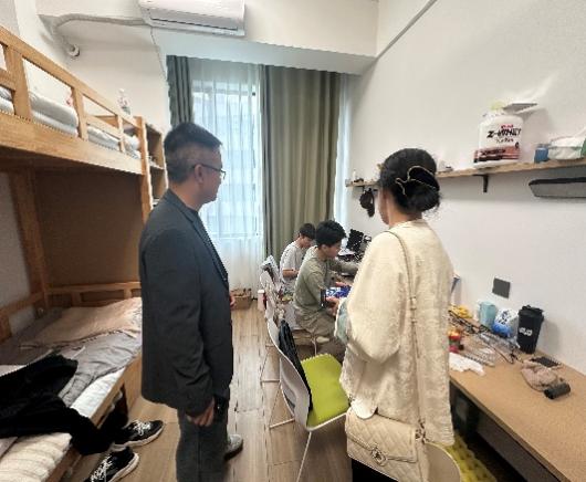 会后,黄华一行前往学生宿舍探望了产业班的学生们与他们展开亲切交谈,细致询问了大家在日常生活及学业进展中遇到的具体问题与实际困难。走访中,老师们勉励同学们要牢牢把握在企业实践的宝贵机会,切实掌握岗位所需的实用技能,及时了解行业发展的前沿动态,并在课余主动深入业务场景、积极积累实践经历,促进理论知识与实际操作深度融合,从而不断提升自身综合素质,努力成长为适应行业需要、具备扎实能力的高素质应用型人才。
