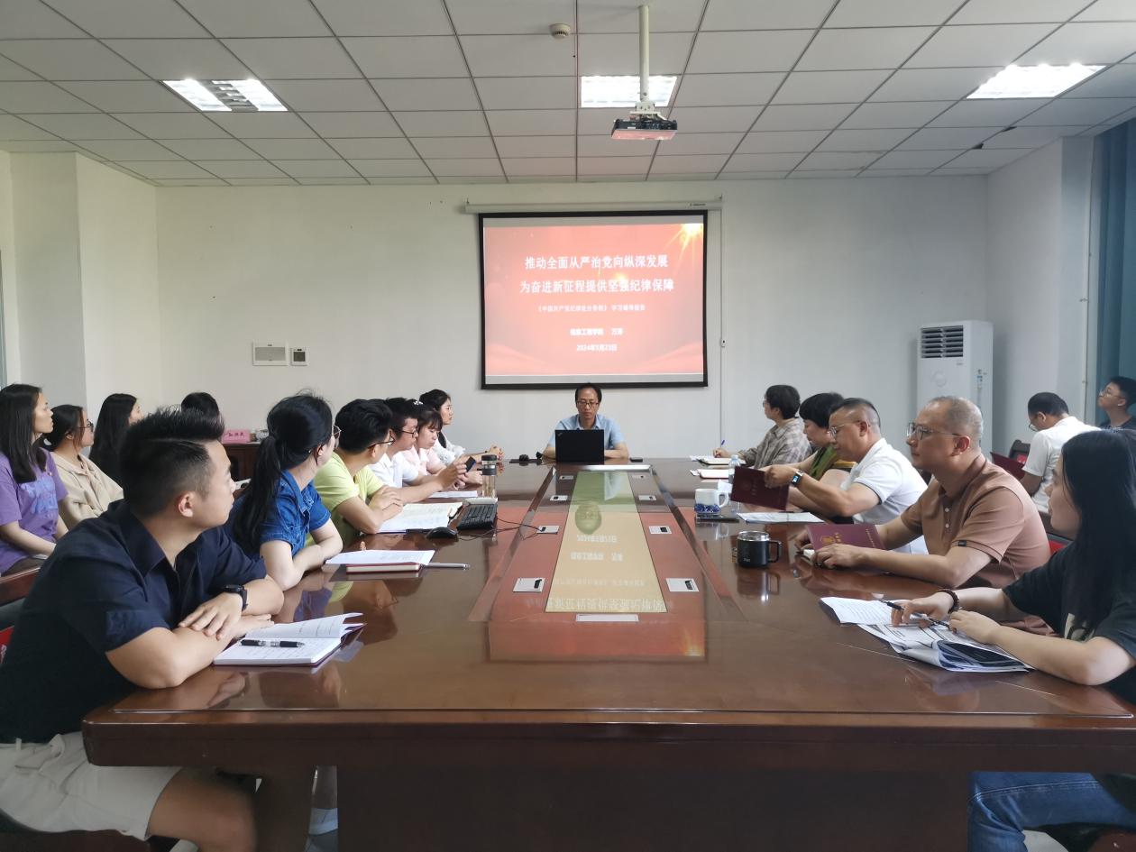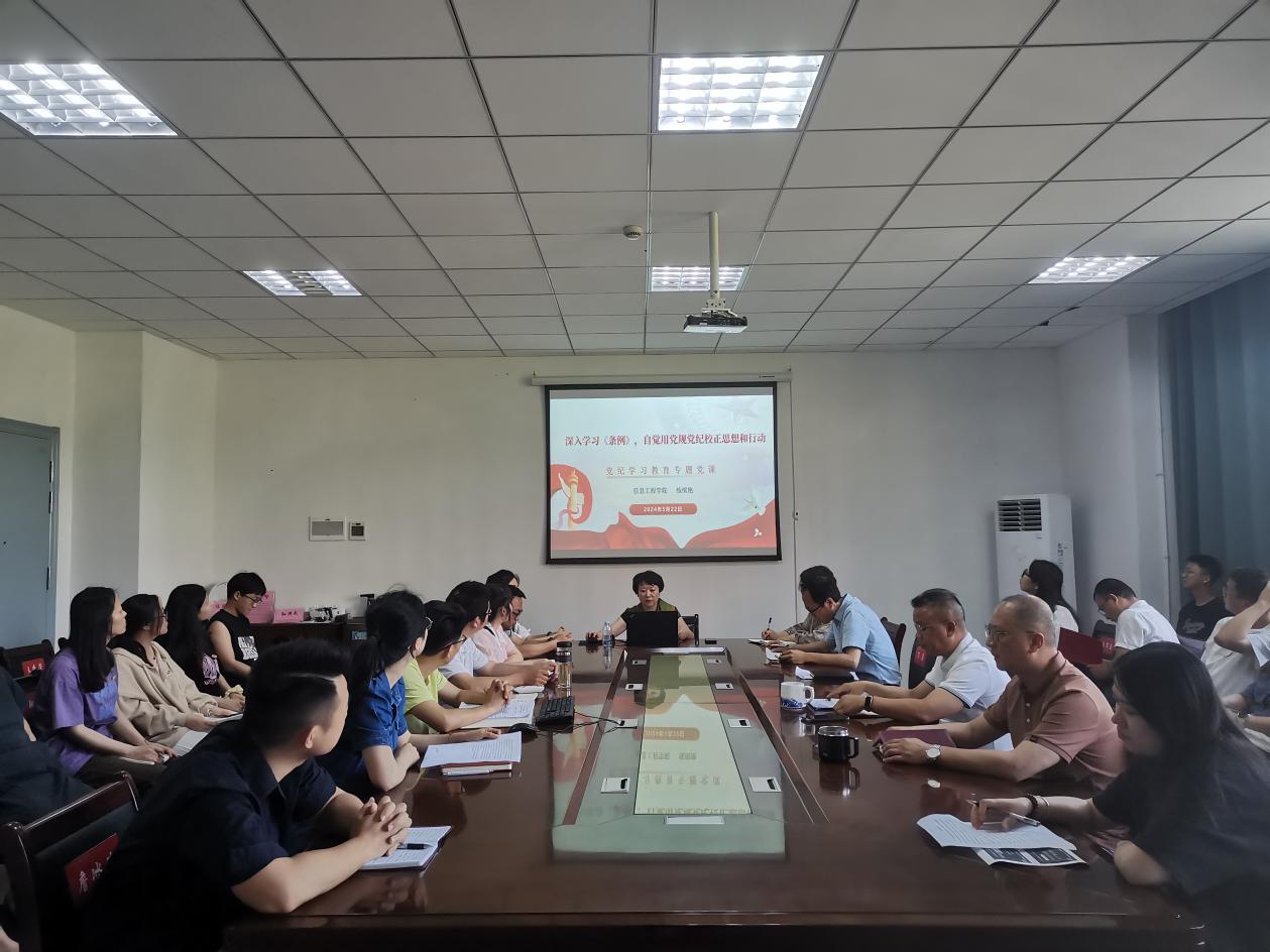 (本网讯:文|江姗/图詹冰清、徐周玉)为深入学习贯彻习近平总书记关于全面加强党的纪律建设的重要论述,认真学习新修订的《中国共产党纪律处分条例》(以下简称《条例》),推动党纪学习教育入脑入心走深走实,5月22日-24日,信息工程学院举办党纪学习教育读书班。