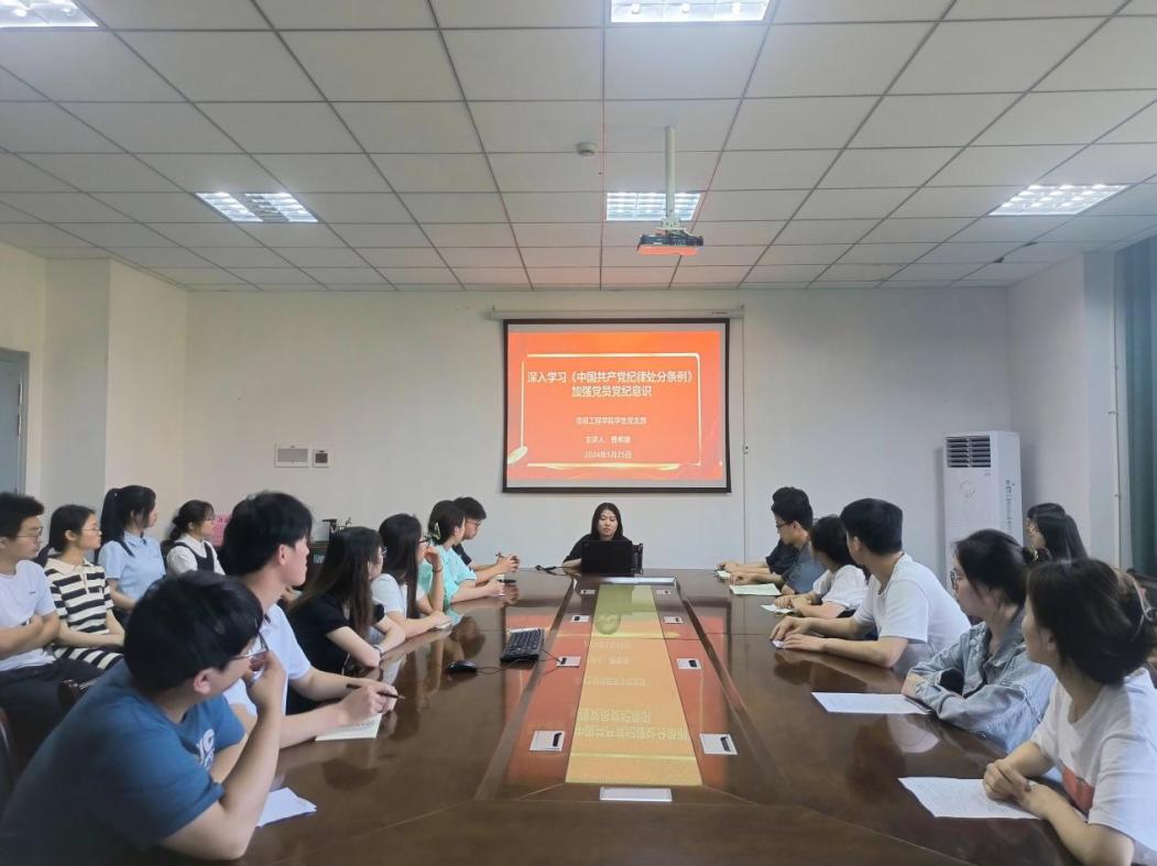 (本讯网:尹路红)为进一步加强党的组织建设,强化纪律意识,坚守党的纪律底线,5月25日下午,信工学院学生党支部在会议室开展“深入学习《中国共产党纪律处分条例》加强党员党纪意识”主题党课,引导支部全体党员学纪、知纪、明纪、守纪,扎实推动党纪学习教育走深走实。