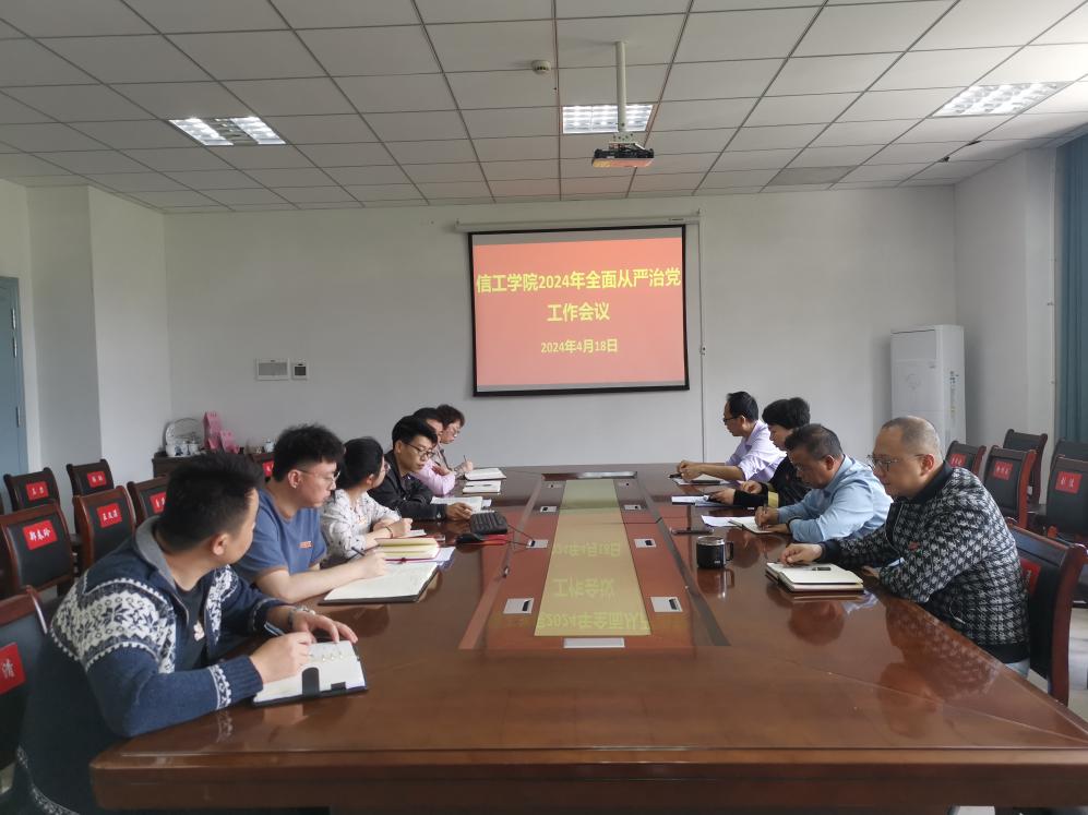 (本网讯:文/图徐周玉)4月18日下午,信息工程学院在院会议室召开2024年全面从严治党工作会议,总结学院2023年全面从严治党和党风廉政建设工作,部署学院2024年全面从严治党工作。学院班子成员、科级干部和党支部书记出席会议。会议由学院党委副书记、纪委书记万涛主持。