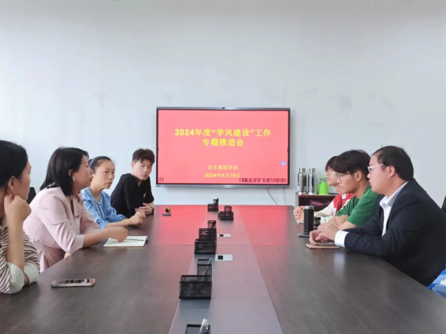 (本网讯:徐文斌)为进一步强化学风建设成效,引领学生以饱满的精神面貌迎接新挑战,4月16日,音乐舞蹈学院在学院楼会议室召开2024年度学风建设工作专题推进会。