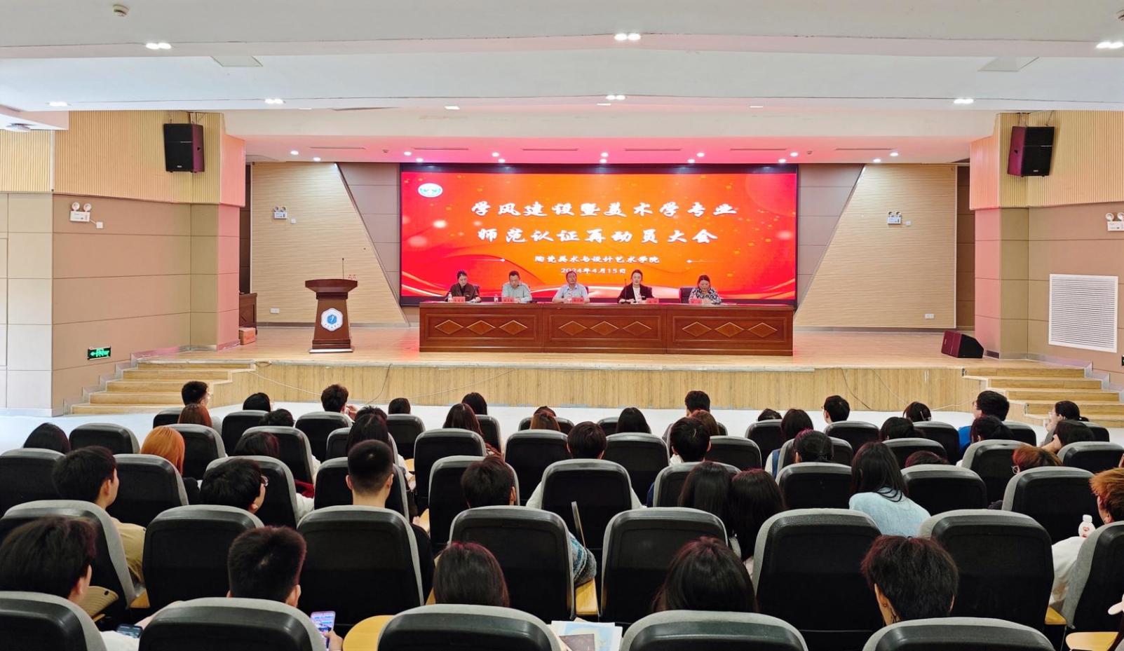 (本网讯:文|邵志鹏/图|王思怡)为进一步营造师范类专业认证工作氛围,扎实推进艺术学院学风建设,动员全体学生积极投入到认证工作中,近日,陶瓷美术与设计艺术学院在图文报告厅召开学风建设暨美术学专业师范认证再动员大会。陶瓷美术与设计艺术学院党委书记陈后辉,院长张博,党委副书记兼纪委书记胡文毅,副院长程幸,党委委员、副院长朱希睿出席会议,全体辅导员、学业导师、各级学生组织及各班班委近300人参加会议。会议由胡文毅主持。