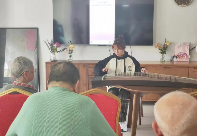 (本网讯:文|董帅/图|蔡沐涵)3月28日,音乐舞蹈学院组织师生团队前往国信康华社区进行“银杏音乐疗愈”专项志愿服务活动。活动在一首古筝弹奏《我的祖国》中拉开序幕,老人们听出了这首熟悉的歌谣情不自禁地就跟着旋律唱了起来。