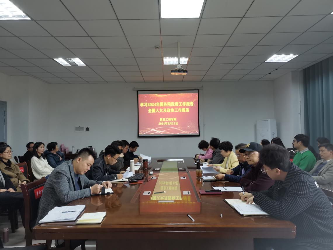 (本网讯:詹冰清)近日,信息工程学院组织召开全体教职工大会,在学院会议室集中学习2024年全国两会精神,学院党委书记练缤艳主持会议。
