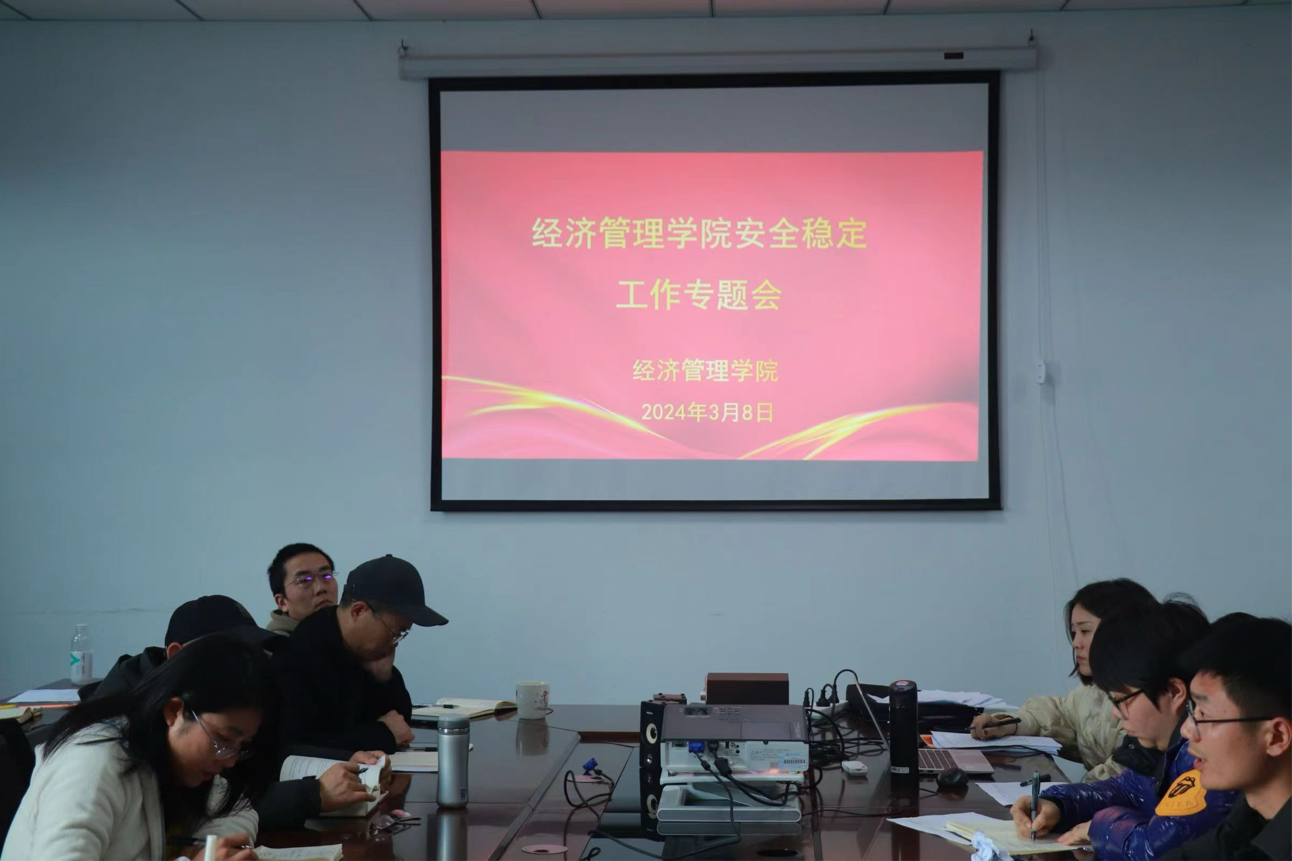 (本网讯:龚雅芬)为进一步确保校园平安有序、师生安全和谐,营造安全、稳定的校园环境,3月8日,经济管理学院在学院会议室召开安全稳定暨防溺水工作专题会议,经济管理学院副院长(负责行政工作)吕慧明、副院长李谊、院党委委员候灵云,全体教师、辅导员参加会议,经济管理学院党委书记王振华主持会议。