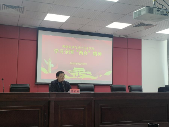 (本网讯:占梦婷)近日,陶瓷美术与设计艺术学院在TR203会议室组织全体教职工学习2024年全国两会精神。学院全体班子成员、各科室各系部负责人以及全体教职工参加学习。陶瓷美术与设计艺术学院党委书记陈后辉主持会议。