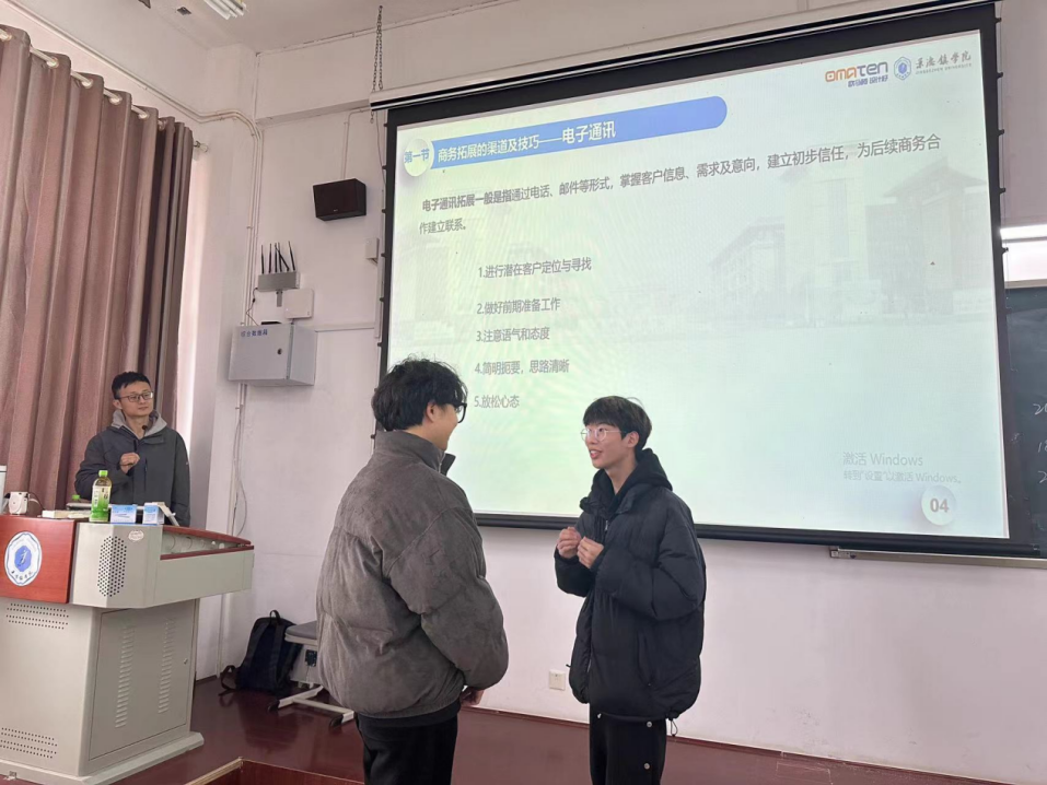 (本网讯:周怡萍)为提升应用型人才培养质量,深化产教融合和校企合作,1月4日-5日,外国语学院邀请欧马腾会展科技(上海)有限公司高级项目经理华晓骏、人事专员肖安康两位企业导师来校开展《会展会议》实训课教学,为商务英语专业学生分享最新的会展行业前景、工作流程和标准等相关知识。为培养教师国际会展实践能力,在本次实训教学期间,学院商务英语系三位教师全程参与课堂协助教学。