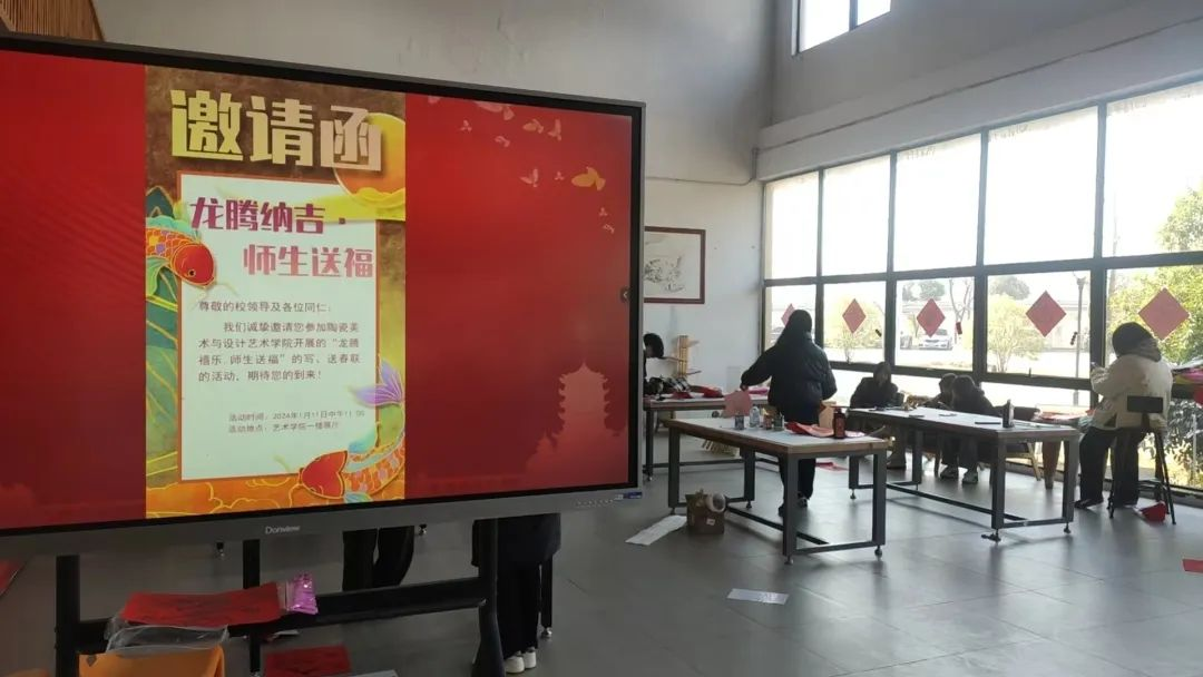 此次“龙腾纳吉,师生送福”活动为师生们提供了一个展示书法才华的平台,也是对传承中华优秀传统文化的生动实践。老师和同学们亲手书写的春联不仅寄托着对学校在新的一年里的美好祝福,更让新春佳节的喜庆氛围弥漫在校园的每一个角落。陶瓷美术与设计艺术学院将继续通过举办丰富多样的文化活动,滋养师生们的精神花园,为和谐美好的校园文化建设贡献力量。