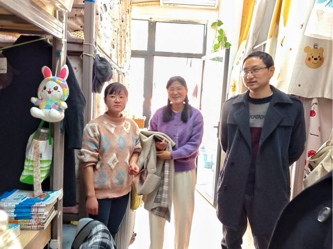 走访过程中,学院领导及老师们详细了解学生宿舍卫生状况、安全管理、住宿条件、学习氛围等情况,并积极收集学生需求,努力为学生排忧解难,加强学生寝室精细化、规范化管理,为学生提供优质服务。冯唐锴关心慰问同学们目前的生活情况,传达了学院对同学们的亲切关怀,勉励同学们要珍惜美好的青春时光,学好专业知识技能,争做全面发展的新时代大学生。老师们细心叮嘱同学们天气早晚温差大,注意增减衣物,预防感冒;提醒大家要做好宿舍消杀工作,定期通风,做好个人防护,共同营造安全、舒适、温馨的宿舍环境;还着重强调了用电安全隐患,禁止使用违规电器,呼吁大家提高安全意识,珍爱生命,切忌将安全问题当作儿戏。