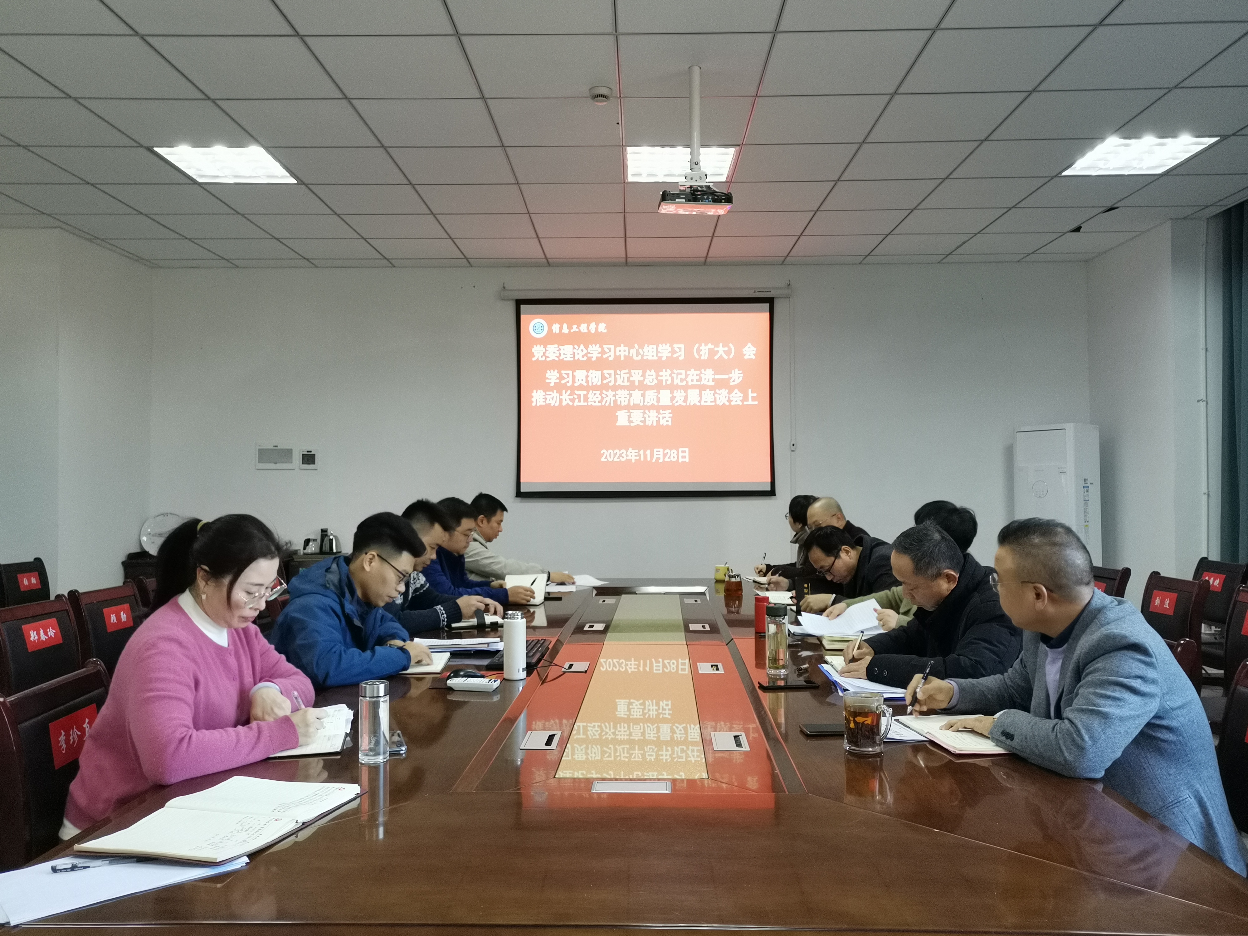 (本网讯:詹冰清)为学习传达习近平总书记在进一步推动长江经济带高质量发展座谈会上的重要讲话精神,11月28日下午,信工学院在二楼会议室召开党委理论学习中心组学习(扩大)会议。信工学院领导班子全体成员、科级干部、教工党支部书记参加此次会议。会议由学院党委书记练缤艳主持。
