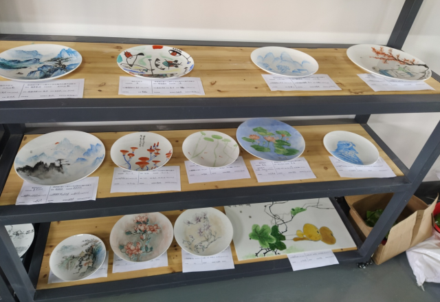参赛学生陶瓷彩绘作品展示现场 曾俊杰摄